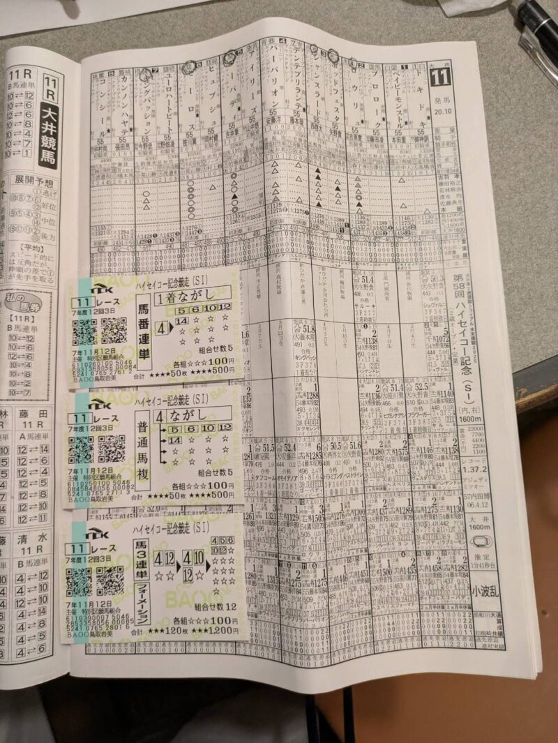 ハイセイコー記念馬券写真送ります。(三連複は、4の1頭軸5頭紐でゲット→交換につき写真無し)三連単とってたら、少しプラスでした😊