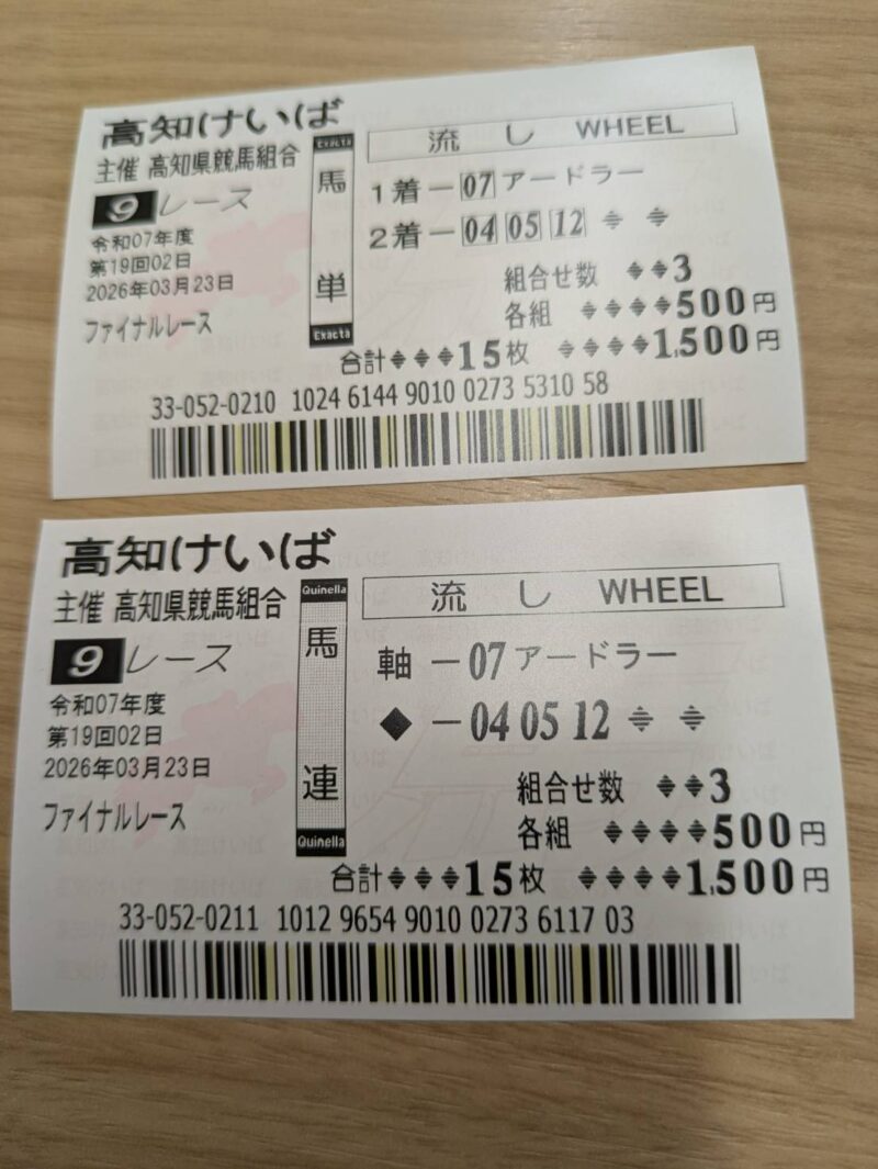 3月22日(日)、23日(月)高知競馬場訪問の感想及び馬券結果を報告致します。